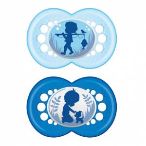 MAM – מאמ זוג מוצצים עם כיתובים תכלת | +6 חודשים