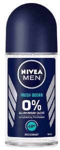 דאודורנט רול‑און NIVEA 0% אלומיניום Fresh Ocean 50 מ"ל לגבר