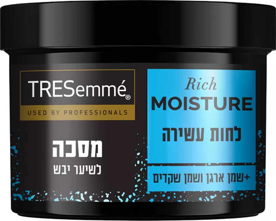 מסכה ללחות עשירה Rich moisture בתוספת שמן ארגן ושמן שקדים. לשיער רך יותר עד פי 2. לשיער יבש. ניחוח יוקרתי.