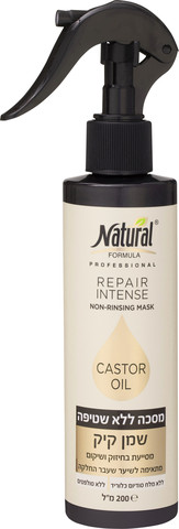 מסכת שמן קיק ללא שטיפה של נטורל פורמולה לשיער חלש, שביר ופגום, מועשרת בשמן קיק וחמאת מנגו.
