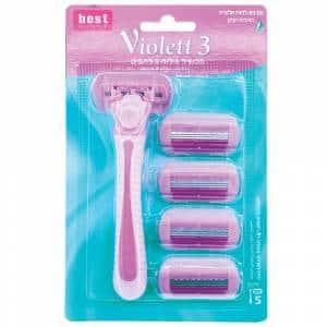 סט סכיני גילוח Violet – 3 להבים רב פעמי לנשים (מכשיר + 5 סכינים)