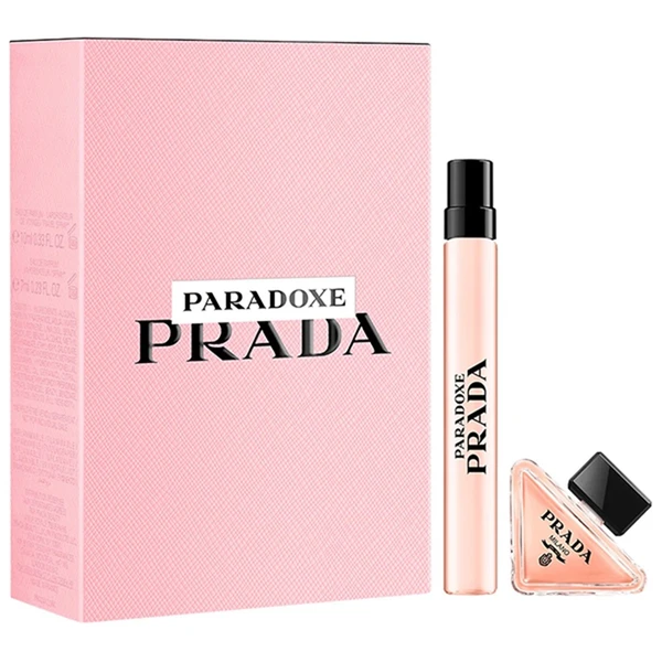 סט המיני היוקרתי של Prada Paradoxe מציע חוויית ניחוח נשית, מודרנית ויוקרתית בנפחים קומפקטיים. הסט כולל שני בקבוקוני Eau de Parfum – 10 מ״ל + 7 מ״ל – אידיאלי לנשיאה בתיק, נסיעות או להתנסות בשכבות הניחוח השונות של הבושם.