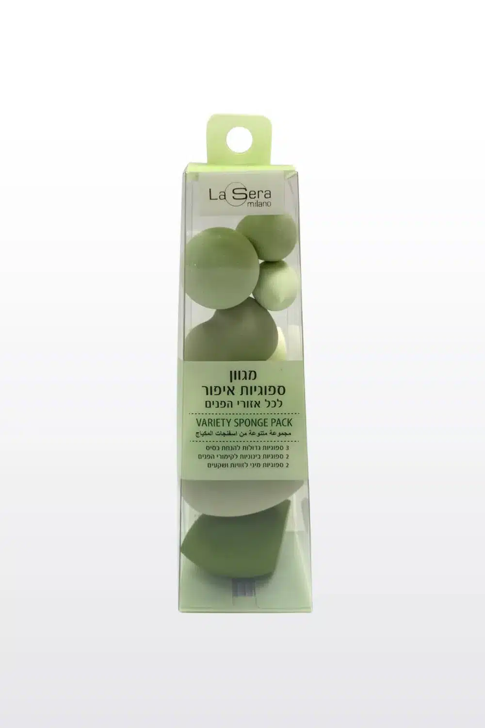 מארז ספוגיות מבית המותג LA SERA, בגדלים שונים, המתאימים להנחת איפור ומייק אפ .